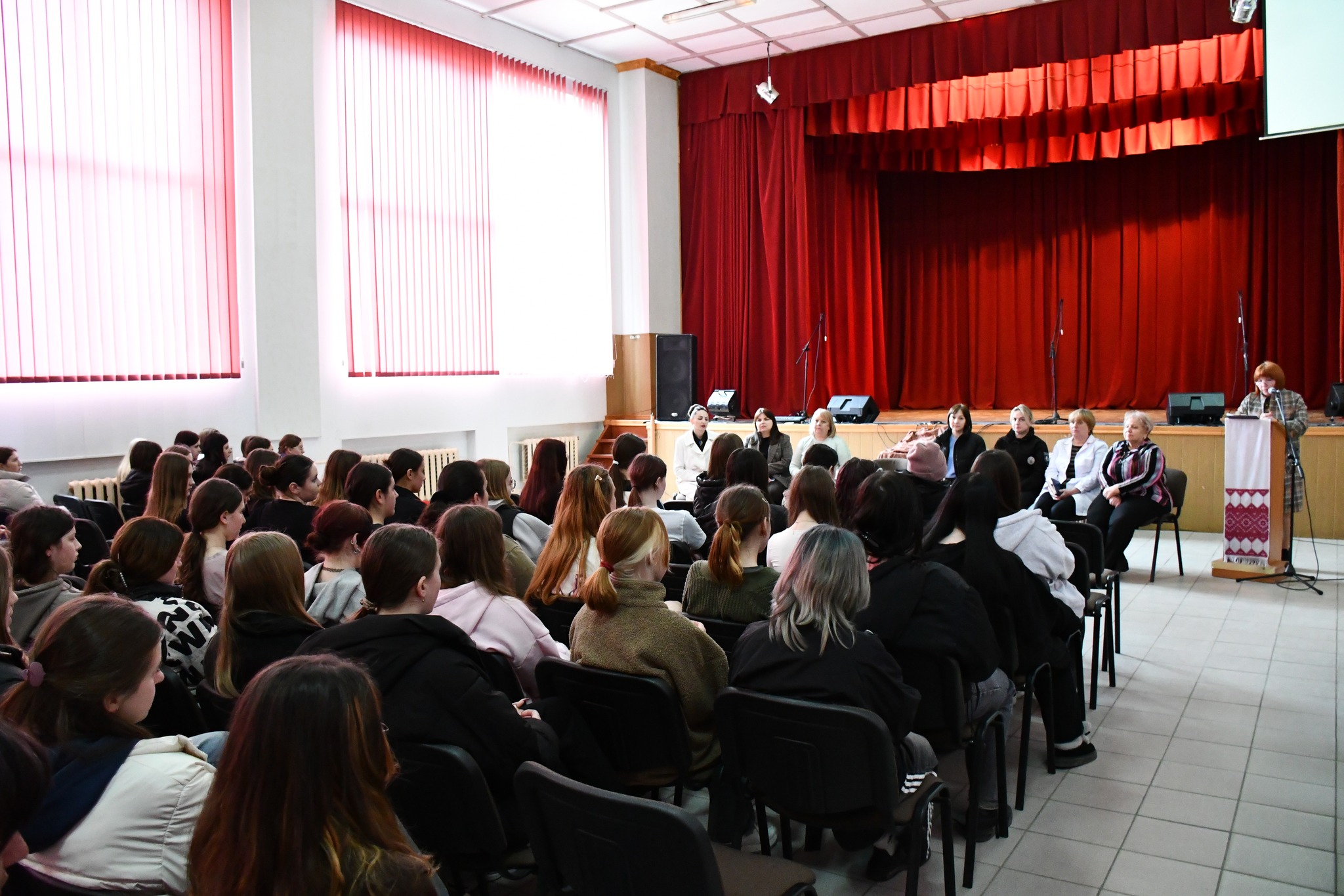 У зустрічі взяли участь та виступили: заступник директора з навчальної роботи Баран О.М., заступник директора з навчально-виробничої практики Полиняк О.Т., інспектор ювенальної превенції Івано-Франківського районного управління поліції ГУНП, старший лейтенант поліції Стефунько І.В., соціальний педагог Окуневич І.С., практичний психолог Добровлянська Н.В., медичний працівник коледжу Нікітенко В.І. та юрисконсульт Нагірна Л.Б.